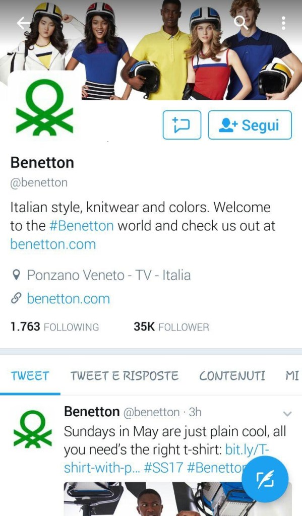 Twitter marketing per aziende e start up Benetton