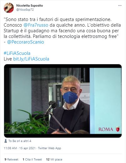 A chiudere la conferenza stampa, l’intervento dell’avvocato Pecoraro Scanio che afferma: “La startup To Be srl mette in campo attivismo civico: è un esempio di impresa che si impegna a creare reddito, a diminuire l’elettrosmog e quindi guarda al bene comune”