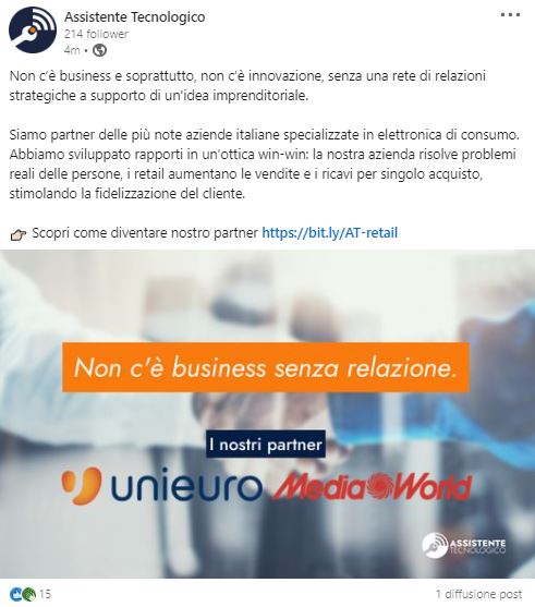 La start up “Assistente Tecnologico” ha stretto importanti partnership con i colossi della vendita come Unieuro e Mediaworld, leader nella distribuzione di elettronica, informatica, tecnologia e di elettrodomestici in Italia, e con altre aziende nazionali e internazionali specializzate nella produzione e distribuzione di assistenti vocali e soluzioni innovative per la domotica.