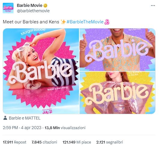 Inoltre, come riporta TheDrum, l’uso dell’hashtag #barbie su TikTok, YouTube e Reels di Instagram è aumentato del 145% nella prima metà del 2023 rispetto all’anno scorso.